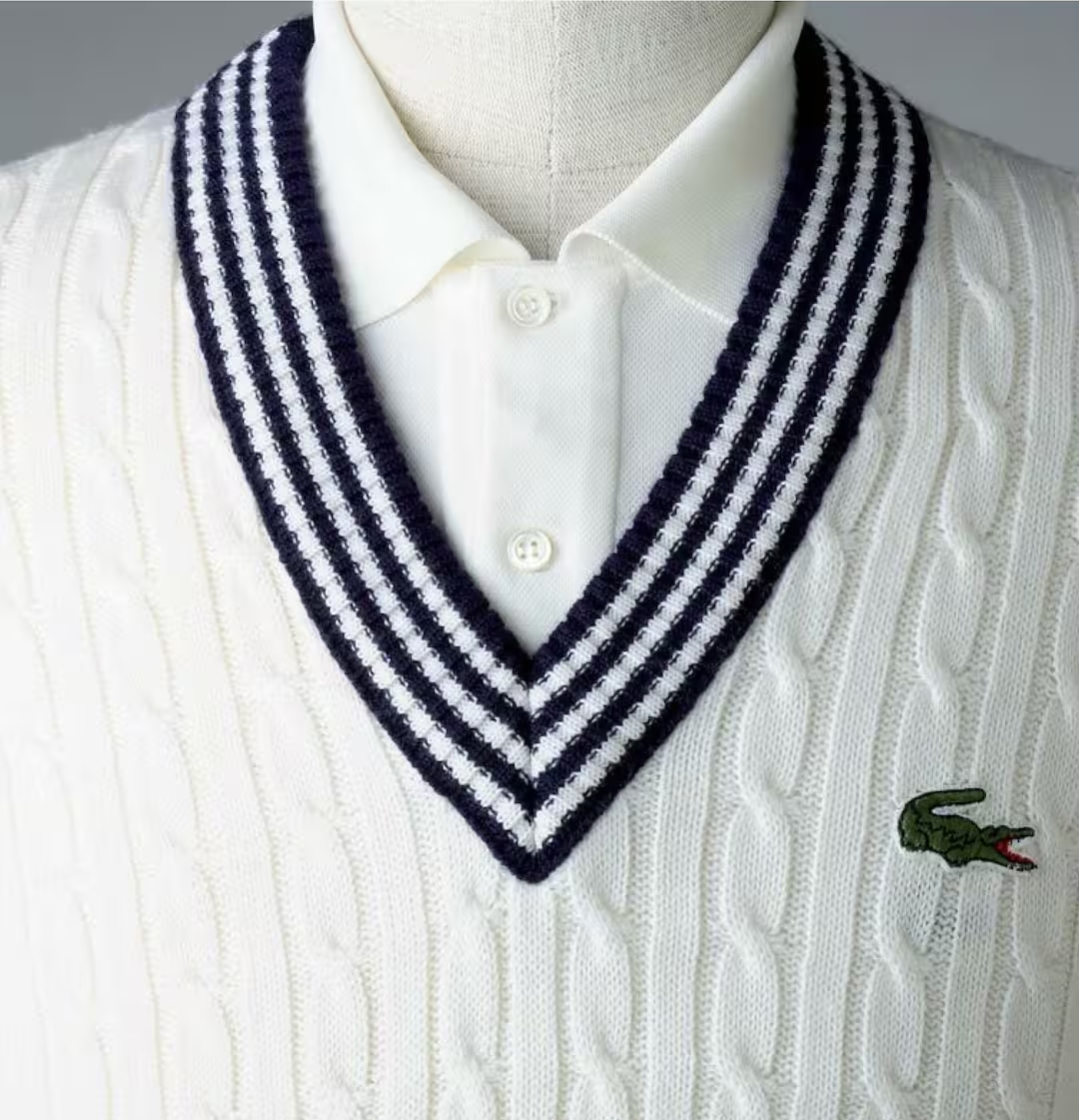 Cable-knit sweater with V-neck Tennis collar, 1979-1980, © Jérémy Bailey